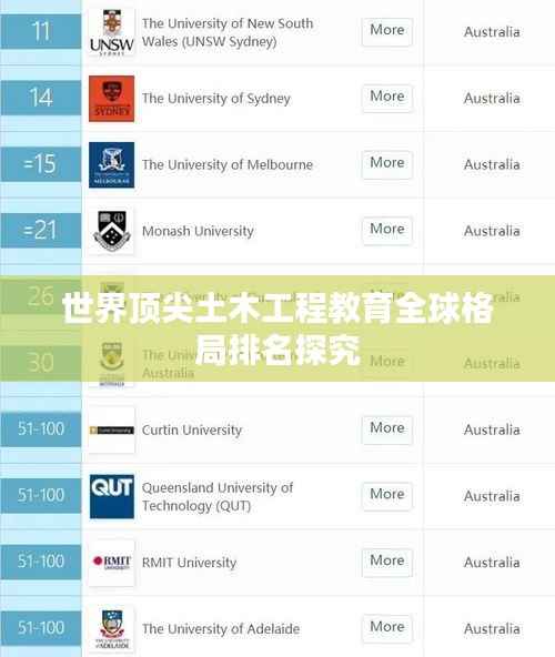 在全球化的时代背景下,高等教育逐渐走向国际化,各国大学的排名成为了学生和家长选择教育的重要参考,土木工程作为建设领域的重要分支,其教育质量直接关系到国家基础设施建设的水平,本文将围绕“世界大学排名土木”这一主题,探究全球顶尖土木工程教育的现状和未来发展趋势。