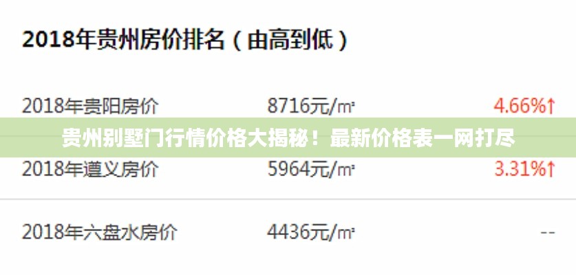 随着国内房地产市场的蓬勃发展,别墅作为高端住宅的代表,其设计风格和材料选择日益受到关注,作为别墅的重要组成部分,别墅门不仅具备安全、实用的功能,更体现了主人的品味与格调,在贵州地区,别墅门市场也呈现出多元化的趋势,本文将从材质、风格、价格等方面对贵州别墅门行情进行详细介绍。